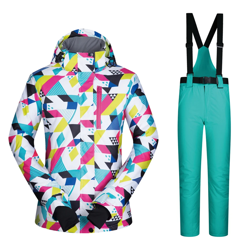 - Women Ski Suit Brands High Quality Set Waterproof Warm -30 Degree Skiing and Snowboarding Jacket and Pants Winter Snowboard Suit : Click here